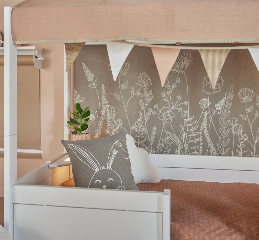 Krevet možete i dodatno ukrasniti Happy Rabbit pametnim tekstilnom dodatkom za džepićima i ostalim dodacima iz kolekcije Happy Rabbit.