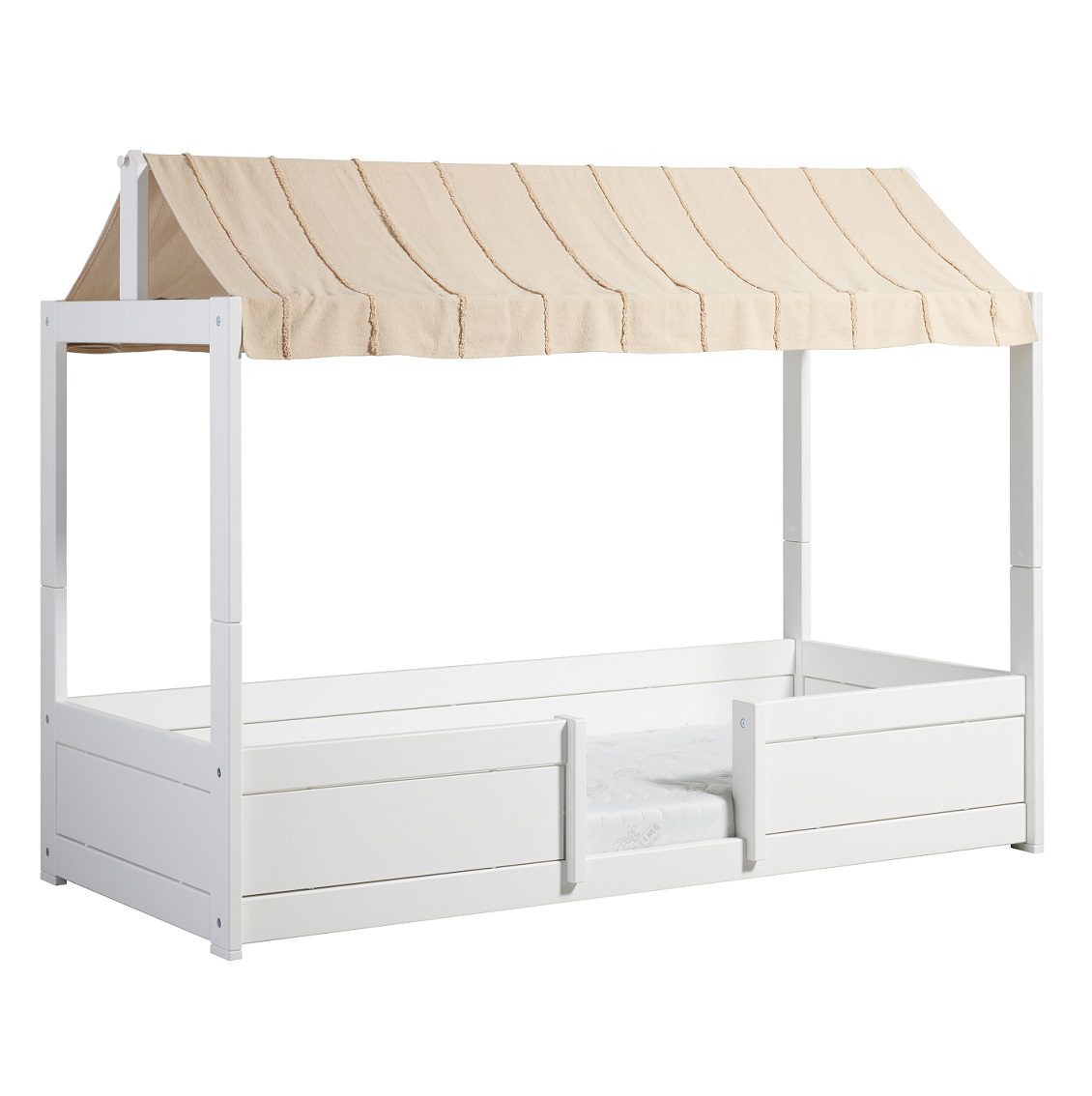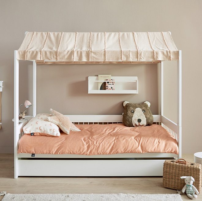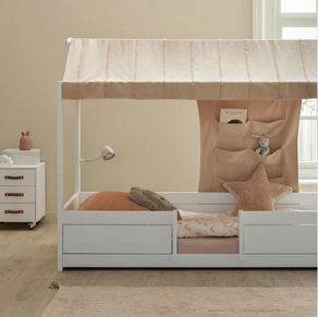 Stvorite ugodnu i nježnu atmosferu s ovim prekrasnim platnenim krovom iz kolekcije Essence. Krov od pamučne tkanine Essence odgovara nekoliko naših LIFETIME Kidsrooms kreveta, kao što je krevet 4-u-1 i krevet za jednu osobu/krevet kućica s krovnom konstrukcijom. Prekrasan platneni krov s finim ručno izrađenim detaljima stvaraju prekrasan ugođaj i činiti će idealno mjeso za sanjanje najslađih snova. Krov od tkanine izrađen je od 100% recikliranogpamuka.