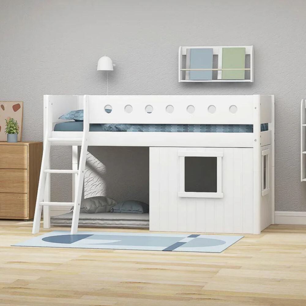 Kreveti iz White kolekcije rastu s Vašim djetetom. Dodatkom dodatnih kratkih nogu na Single bed, možete prenamijeniti svoj krevet u Mid-high krevet. Ako Vam niti Mid-high nije dovoljno visok, dodatkom visokih nogu na Single bed dobit ćete High krevet.