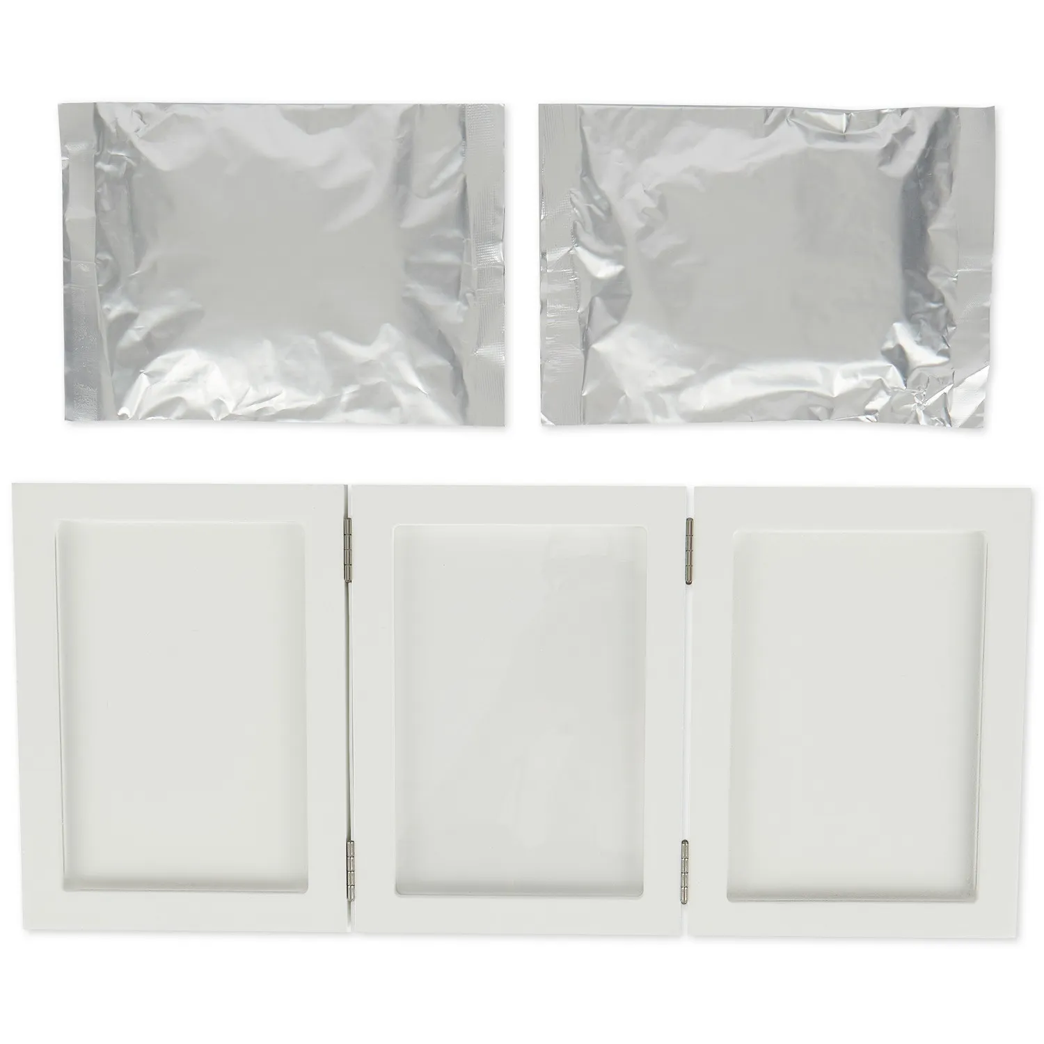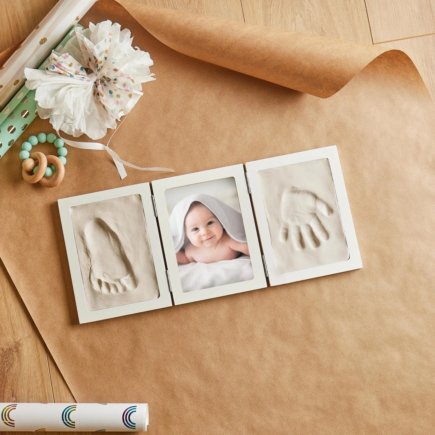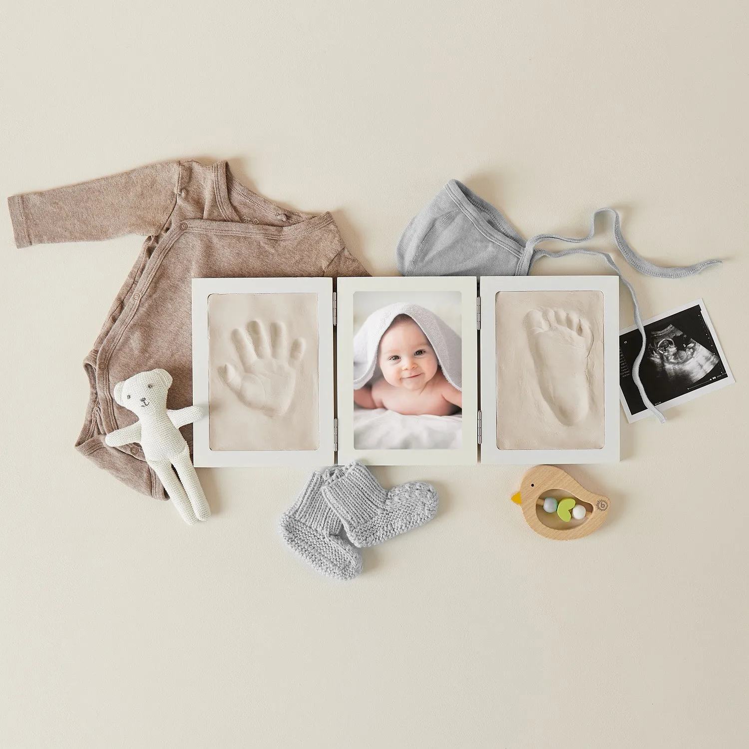 U pakiranju se nalazi okvir i masa za otiske, koja je nježna prema dječjoj koži i omogućuje izradu predivnih reljefa. Količina priložene mase dovoljna je za ispunu dvaju okvira, dok je središnji prostor predviđen za fotografiju dimenzija 16 x 11 cm.