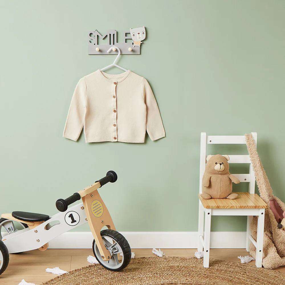 Bilo u hodniku, u dječjoj sobi ili kod bake i djeda, Vaše će dijete voljeti održavati stvari urednima s ovom preslatkom zidnom vješalicom. S 4 robusne kukice, Scandi-chic vješalica za jakne, torbe i kapute spremna je za upotrebu.