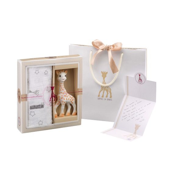 U poklon paketu nalazi se pamučni swaddle i najdraža bebina igračka za zubiće – Sophie žirafa!