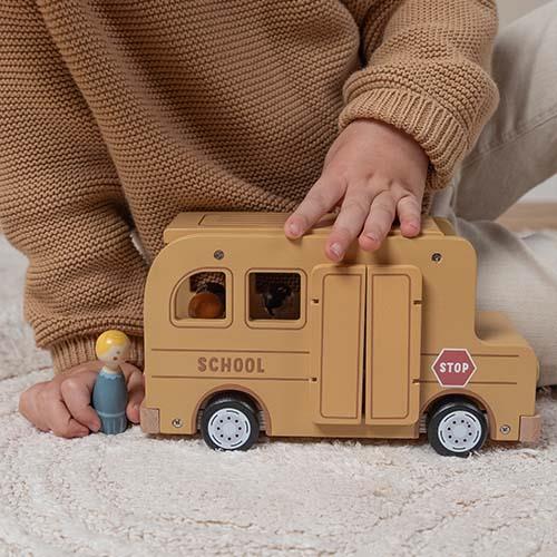 Nakon što vozač pokrene motor, možete krenuti na putovanje puno radosti i otkrića. Bez obzira vozite li se virtualnim gradskim pejzažima ili preuzimate zamišljene putnike, ovaj će vas drveni autobus odvesti kamo god želite. Okretni kotači omogućuju vašem mališanu da se bez napora kotrlja po podu i skuplja prijatelje iz svakog kuta sobe. Vrata i krov drvenog školskog autobusa mogu se otvoriti, a figure su kompatibilne s kućicom za lutke i drugim setovima za igru, poput aviona i autića s prikolicom. Neka vaš mališan uživa u pričanju priča uz ovaj svestrani drveni set igračaka.