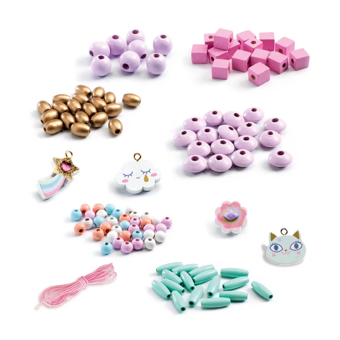 Ovaj set sastoji se od 400 perlica i privjesaka u obliku mačke, oblaka i duge.