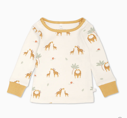 Povećajte udobnost uz najmekšu pidžamu. Ovaj par s otisnutim divljim žirafama, savršen je za male ljubitelje prirode i izrađen je od naše prozračne prepoznatljive tkanine za udoban san.