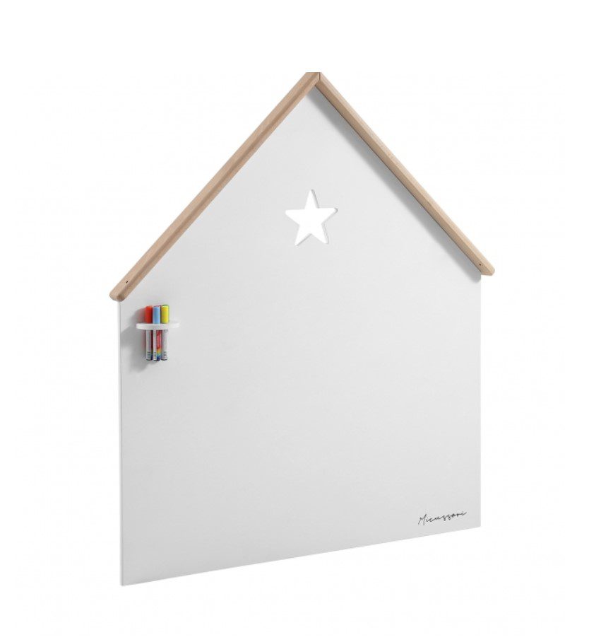 Micuna MICUSSORI multifunkcionalna ploča koja se postavlja na zid dječje sobe je cool ploča na kojoj klinci mogu pisati i crtati sa tekućim kredama. Također se može koristiti i kao ukras na uzglavlju dječjeg kreveta. Ploča dolazi sa kredama i sa drvenim držačem za krede. Na kroviću se nalaze rupice kako bi se kroz njih mogle provući lapice na žici, girlande ili drugi ukrasi po Vašoj želji.
