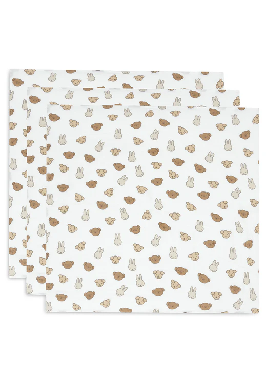 Dodajte ove preslatke tkanine od muslina u svoju kolekciju! Tetrice imaju slatki uzorak sa zečićem Miffijem i njegovim životinjskim prijateljima. Izrađene od najmekšeg pamuka.